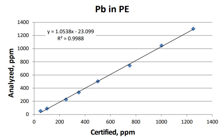 Máy XRF có thể phân tích định lượng được các nguyên tố Cd, Pb, Hg, Cr tổng cộng, Br tổng cộng và Cl.