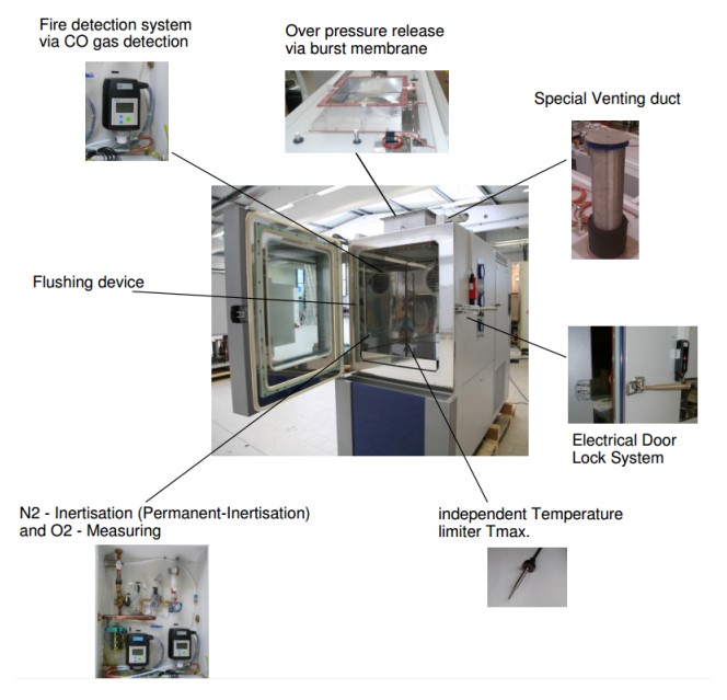 Trong quá trình thử nghiệm với Pin Lithium có thể xuất hiện các tình huống xấu như cháy nổ, thoát khí, rò rỉ chất điện phân, nứt vỡ pin gây nguy hiểm đến người thử nghiệm. Vì vậy các hệ thống an toàn trong quá trình thử nghiệm Pin Lithium là vô cùng quan trọng.